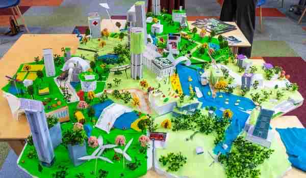 Le Principe : Imaginer et construire la maquette de la ville idéale de demain en prenant en compte les enjeux RSE d’aujourd’hui et de demain.Réaliser une œuvre collective esthétique répondant aux exigences RSE et de qualité de vie de la ville du futur. Green City est une expérience de simulation ludique, pédagogique et responsable. Les participants développent une vision commune, travaillent en équipe et communiquent entre eux afin d’établir une stratégie globale. Cette activité développe la créativité, stimule la gestion de projets et sensibilise les participants aux enjeux sociétaux et responsables actuels : à savoir l’innovation et la conduite du changement.